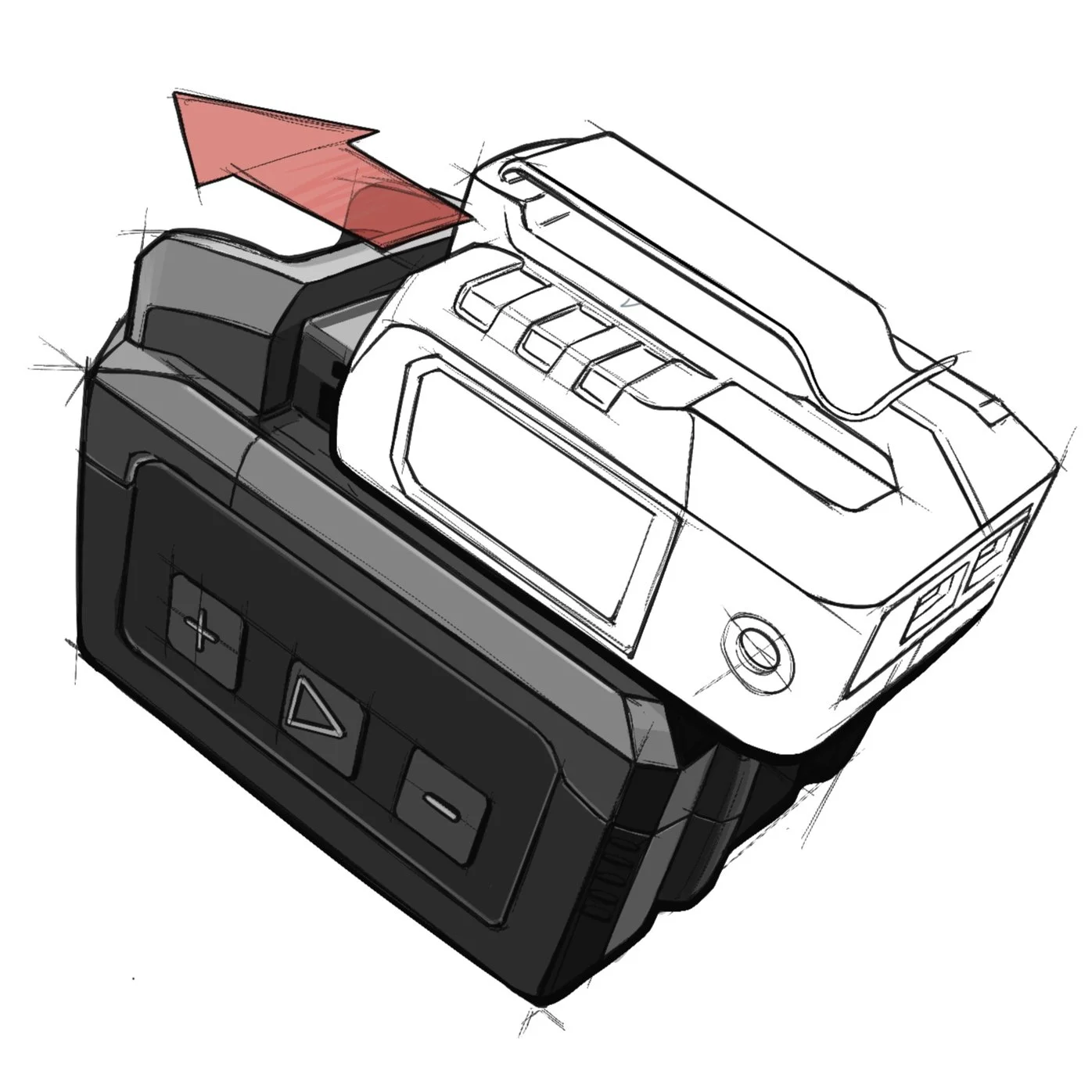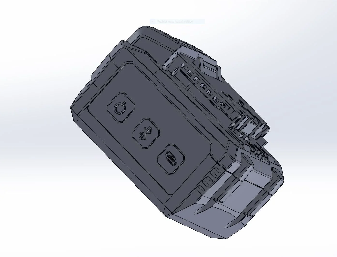 The aim was to integrate a functioning Bluetooth speaker into the battery without increasing the size of the battery housing. The speaker should also to be powered by the battery. This would allow the speaker to be charged using a normal battery charger, as the upper part of the housing would remain the same. In addition, users could simply use the Flex Superposition if the battery of their power tool runs out, as it can still be used as a battery.