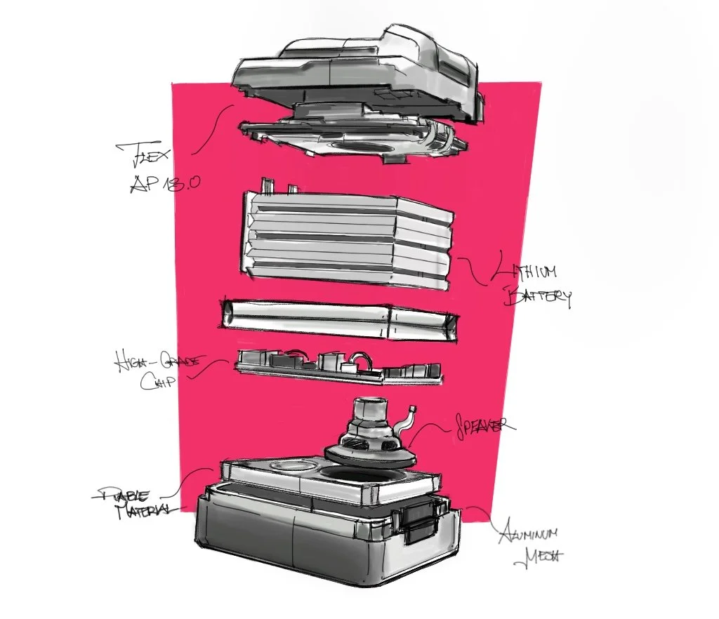 The project was developed in collaboration with the power tool manufacturer Flex. An internal competition was organized for the project with a prize money of 2000$. The task was to create an audio entertainment system that is powered by a Flex battery and is suitable for the customer base.