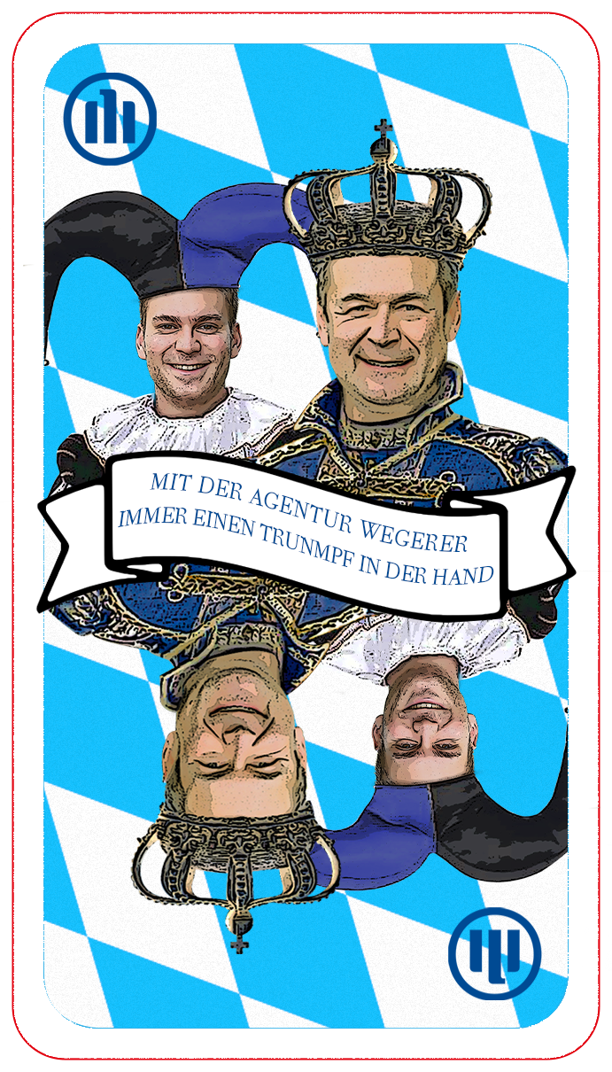 This was an assignment where I was asked to design the back of a deck of cards for a corporate promotional gift. Father and son are depicted as king and jester. The QR code is integrated to lead customers directly to the agency's website. The job was a nice little change of pace that allowed me to let off some steam in Photoshop.